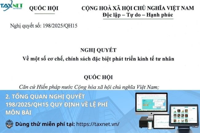 Theo Điều 10 Nghị quyết 198/2025/QH15 về hỗ trợ thuế, phí và lệ phí, Quốc hội quy định chấm dứt việc thu và nộp lệ phí môn bài kể từ ngày 01/01/2026. Nghị quyết này áp dụng đối với doanh nghiệp, hộ kinh doanh, cá nhân kinh doanh cùng các tổ chức, cá nhân có liên quan.