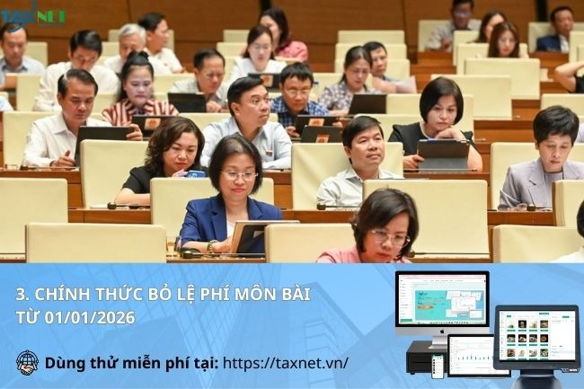 Việc chính thức bỏ lệ phí môn bài từ 01/01/2026 theo Nghị quyết 198/2025/QH15 đang nhận được sự quan tâm lớn từ cộng đồng doanh nghiệp và hộ kinh doanh. Đây được xem là một bước cải cách quan trọng trong chính sách thuế, góp phần giảm chi phí tuân thủ và tạo môi trường kinh doanh thuận lợi hơn trong giai đoạn tới. Vậy việc bỏ lệ phí môn bài sẽ ảnh hưởng như thế nào đến người nộp thuế? Cùng phần mềm kế toán Taxnet tìm hiểu chi tiết trong bài viết dưới đây.