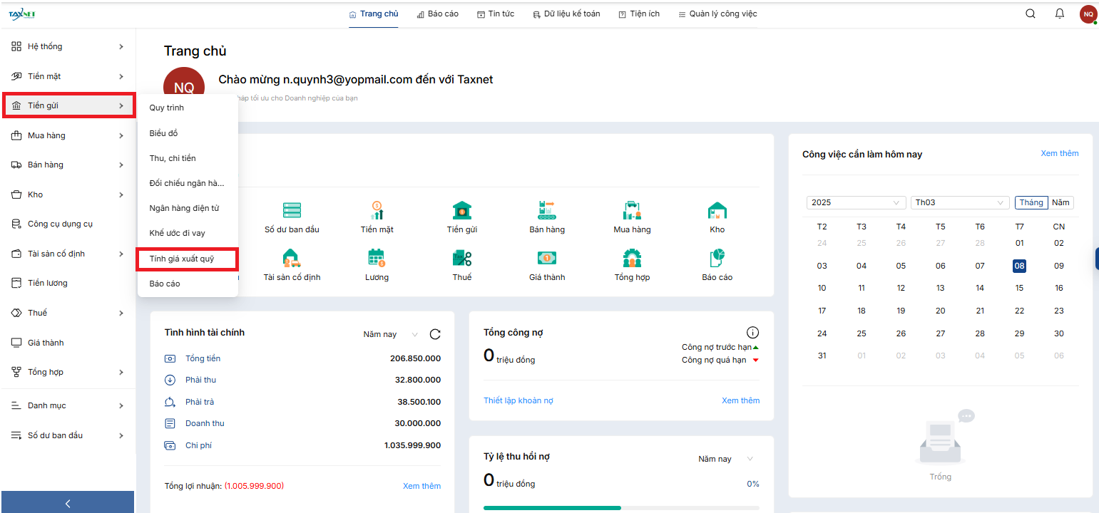 Bước 1: Vào phân hệ Tiền gửi → chọn Tính tỷ giá xuất quỹ