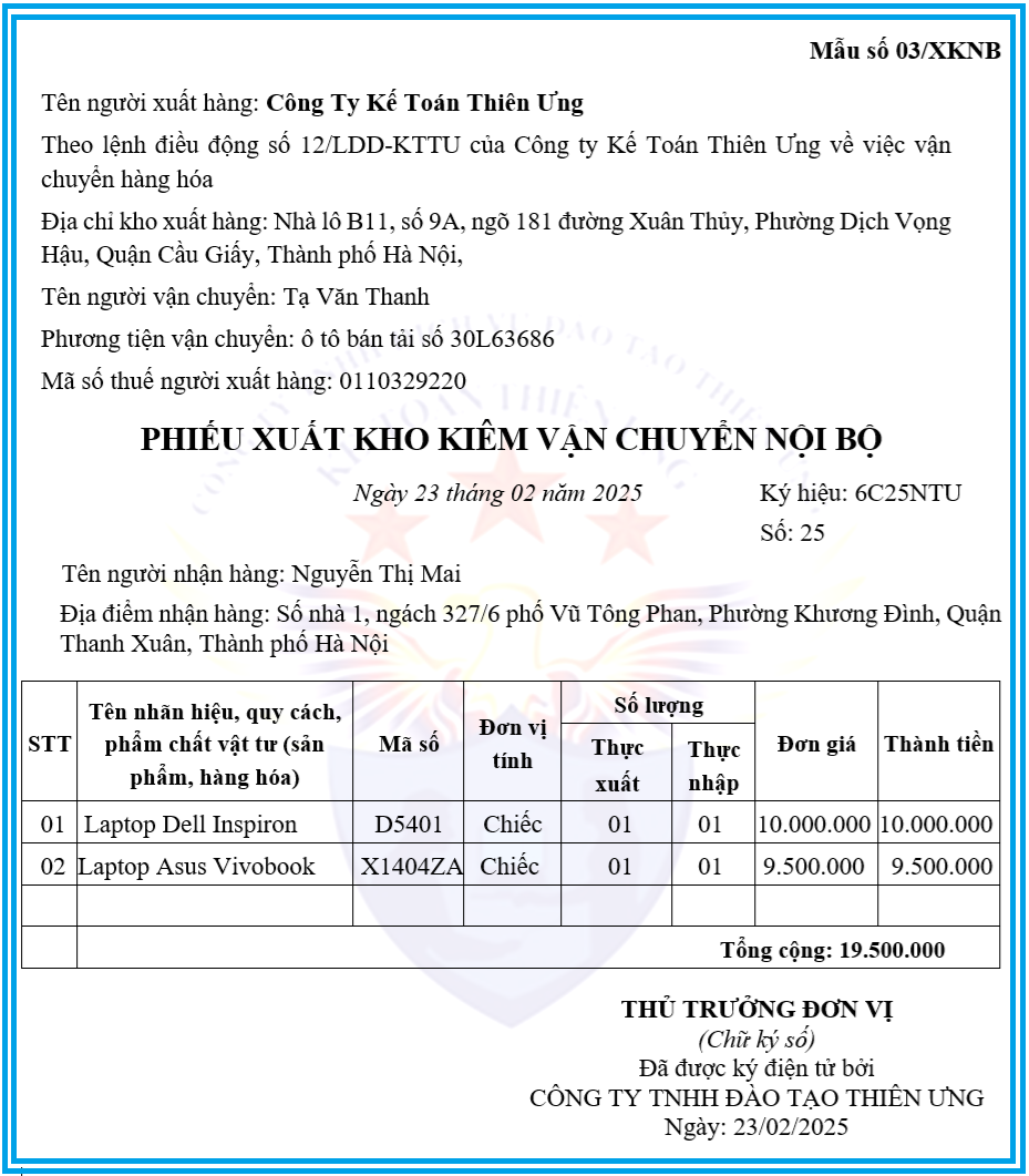 Năm 2025 đánh dấu sự thay đổi mạnh mẽ trong công tác quản lý hàng hóa nội bộ doanh nghiệp, khi yếu tố minh bạch và tuân thủ quy định pháp luật ngày càng được chú trọng. Phiếu xuất kho kiêm vận chuyển nội bộ điện tử 2025 trở thành chứng từ không thể thiếu, giúp doanh nghiệp chứng minh tính hợp pháp của việc điều chuyển hàng hóa giữa kho, chi nhánh hoặc đơn vị trực thuộc. Cùng phần mềm kế toán Taxnet khám phá chi tiết về mẫu phiếu quan trọng này trong nội dung sau.