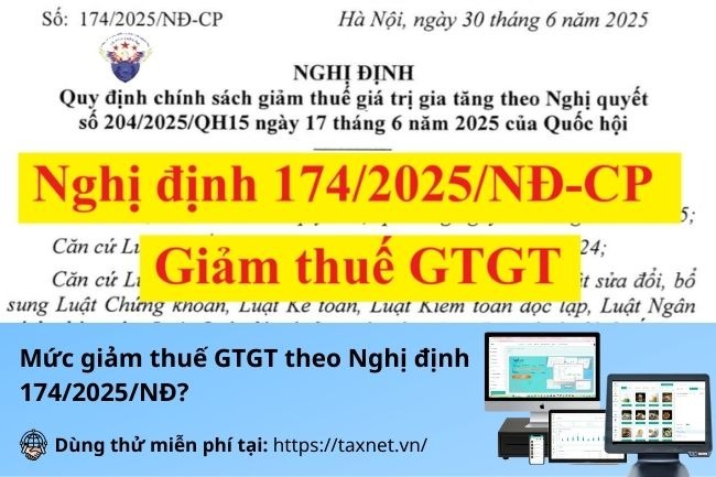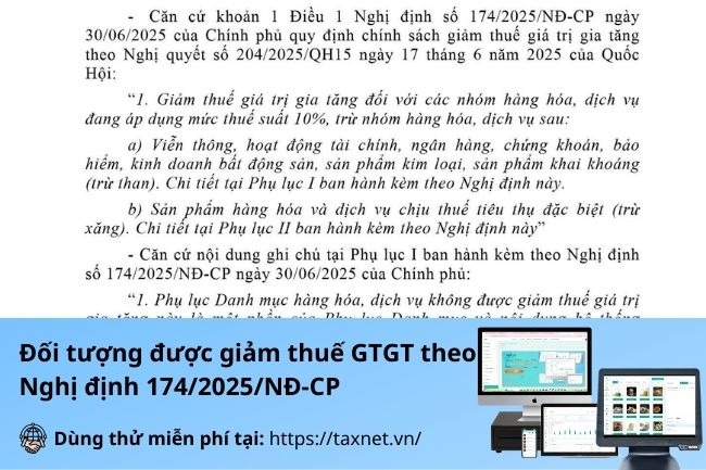 Ngày 30/6/2025, Chính phủ ban hành Nghị định 174/2025/NĐ-CP quy định chính sách giảm thuế giá trị gia tăng theo Nghị quyết 204/2025/QH15.