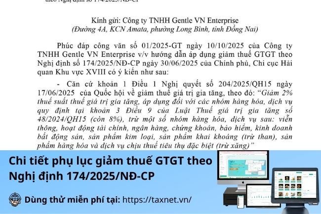 Cùng phần mềm kế toán Taxnet tìm hiểu về phụ lục giảm thuế GTGT 2025 theo nghị định 174/2025/NĐ-CP để nắm rõ các quy định mới không chỉ giúp doanh nghiệp thực hiện kê khai đúng pháp luật mà còn tận dụng tối đa chính sách ưu đãi thuế để giảm chi phí và tối ưu hoạt động kinh doanh.